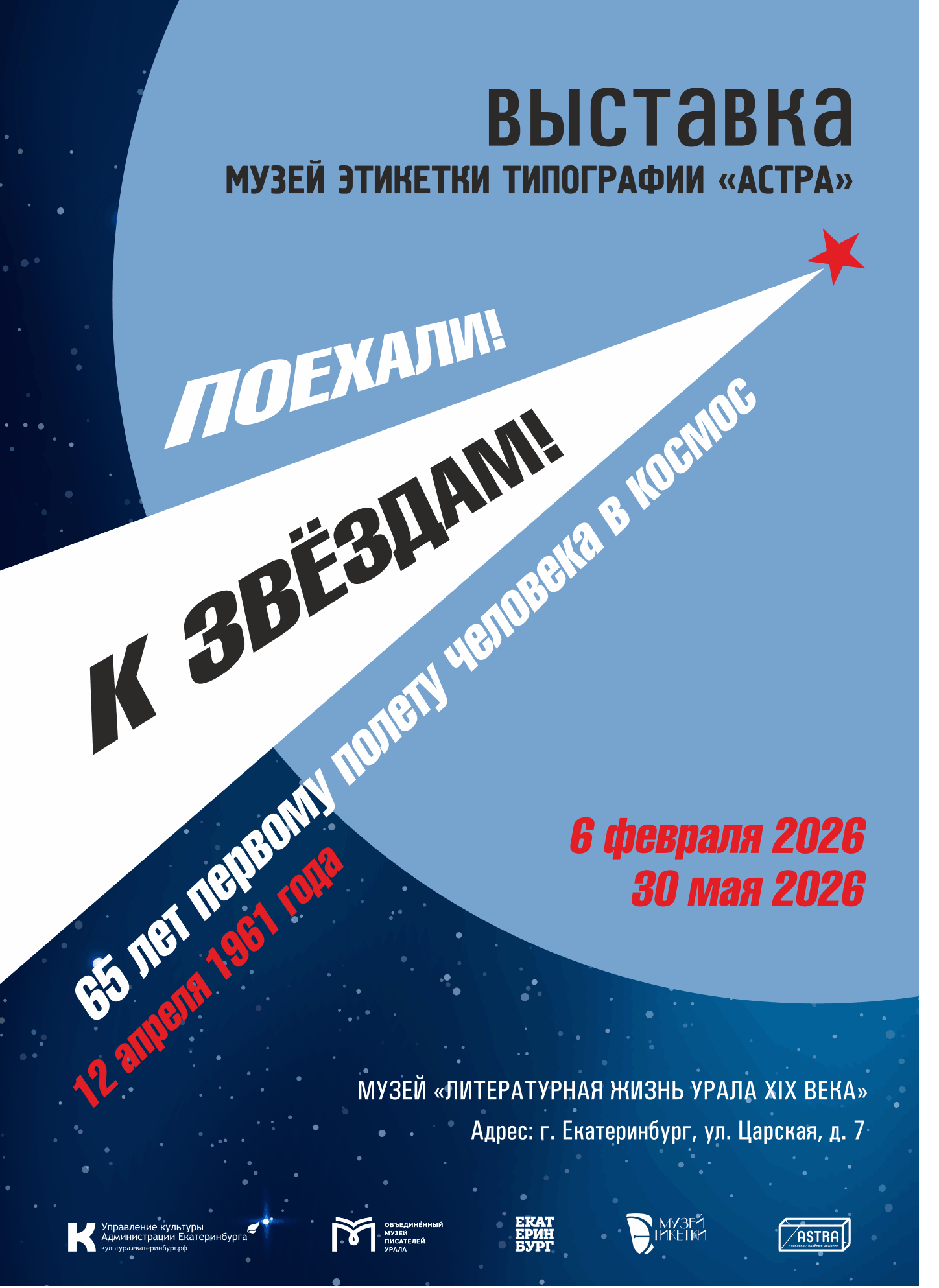 6 февраля 2026 года открывается выставка «К звёздам!» Музея этикетки типографии «Астра». «К звёздам!» – проект, посвященный грандиозному событию в истории человечества 65-летнему юбилею первого полёта человека в космос.