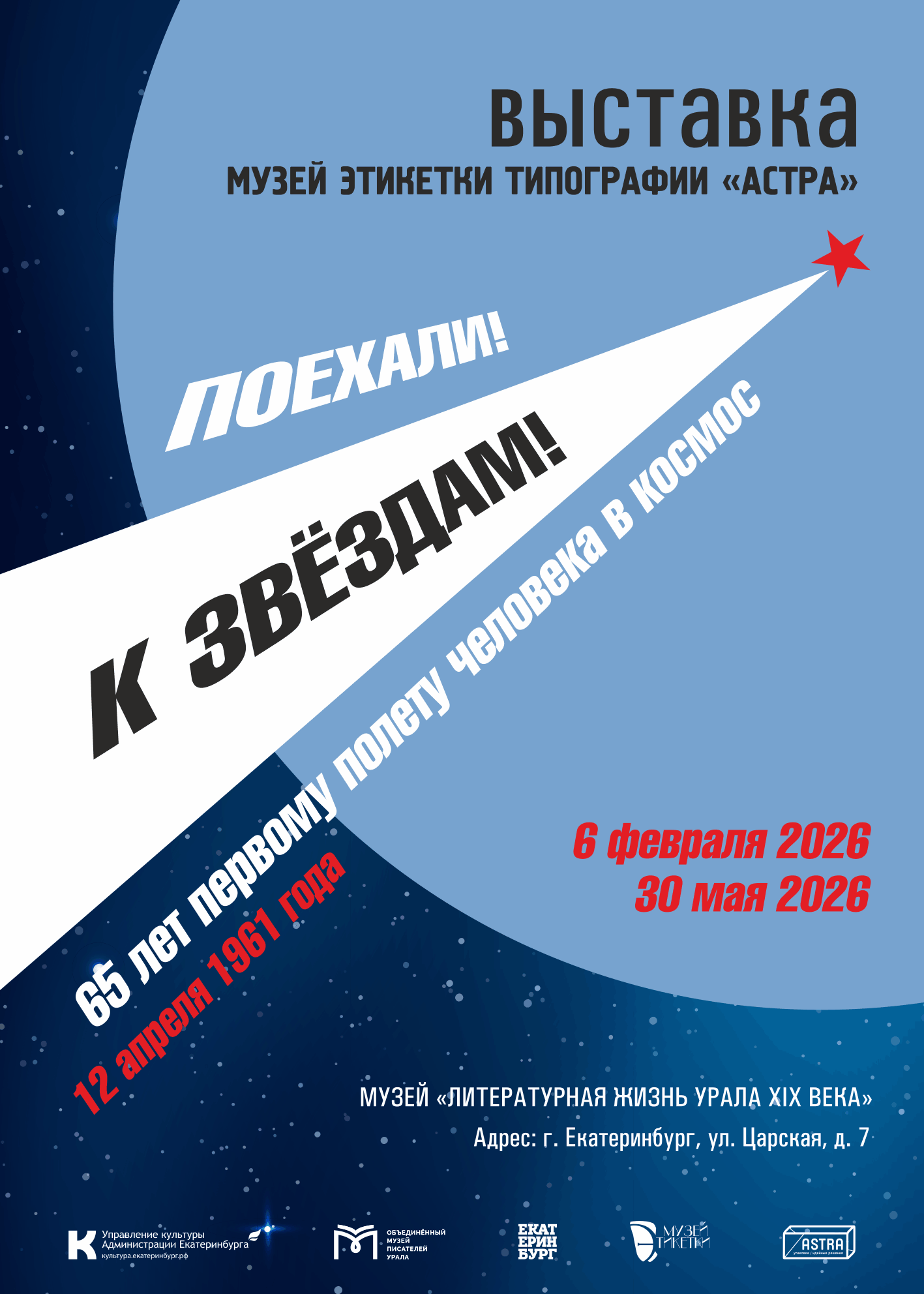 6 февраля 2026Открытие выставки «К звездам!»6 февраля 2026 года открывается выставка «К звёздам!» Музея этикетки типографии «Астра». «К звёздам!» – проект, посвященный 65-летнему юбилею первого полёта человека в космос.